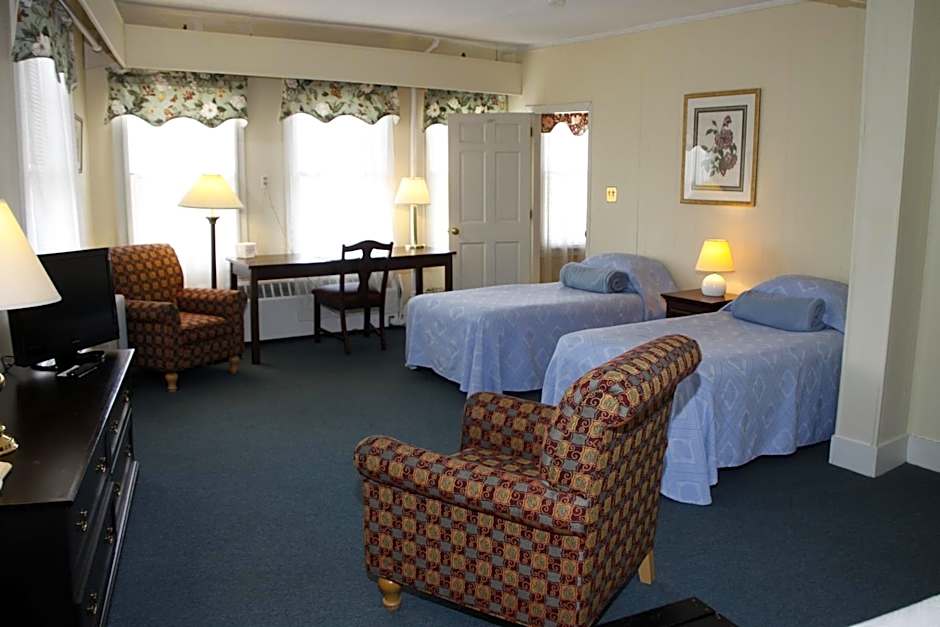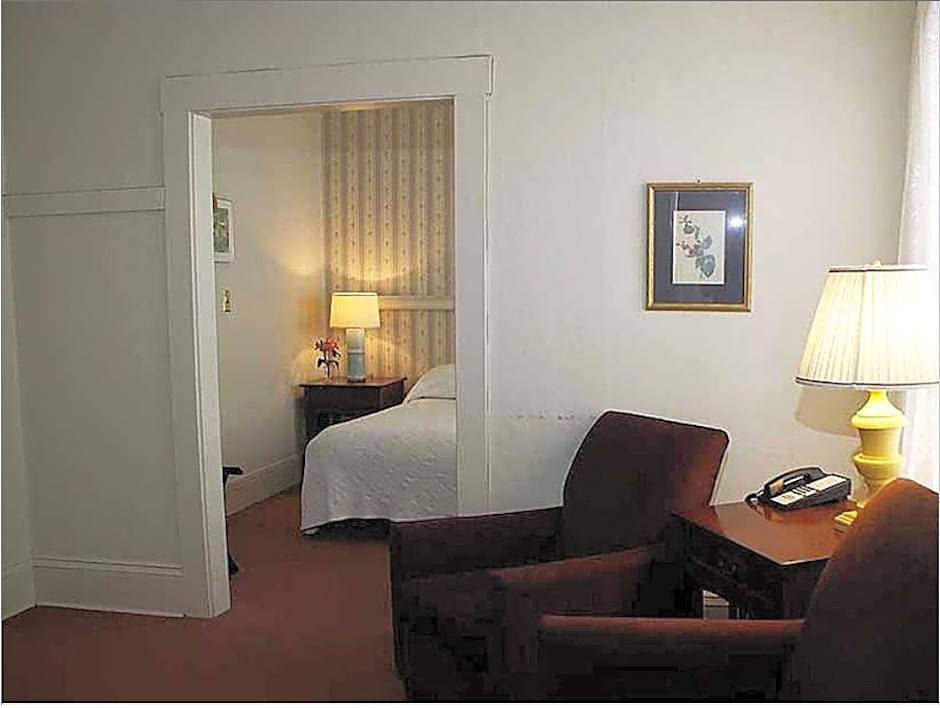 This one-bedroom suite features a spacious living room and a kitchenette. The bedroom offers views of downtown White River Junction.